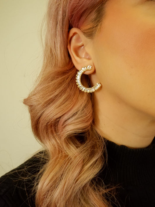 Σκουλαρίκια Επιχρυσωμένο Ατσάλι Με Στρας 'Crescent Moon΄