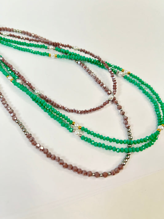 Ατσάλινο Κολιέ Με Χάνδρες SeaGreen & Περλες